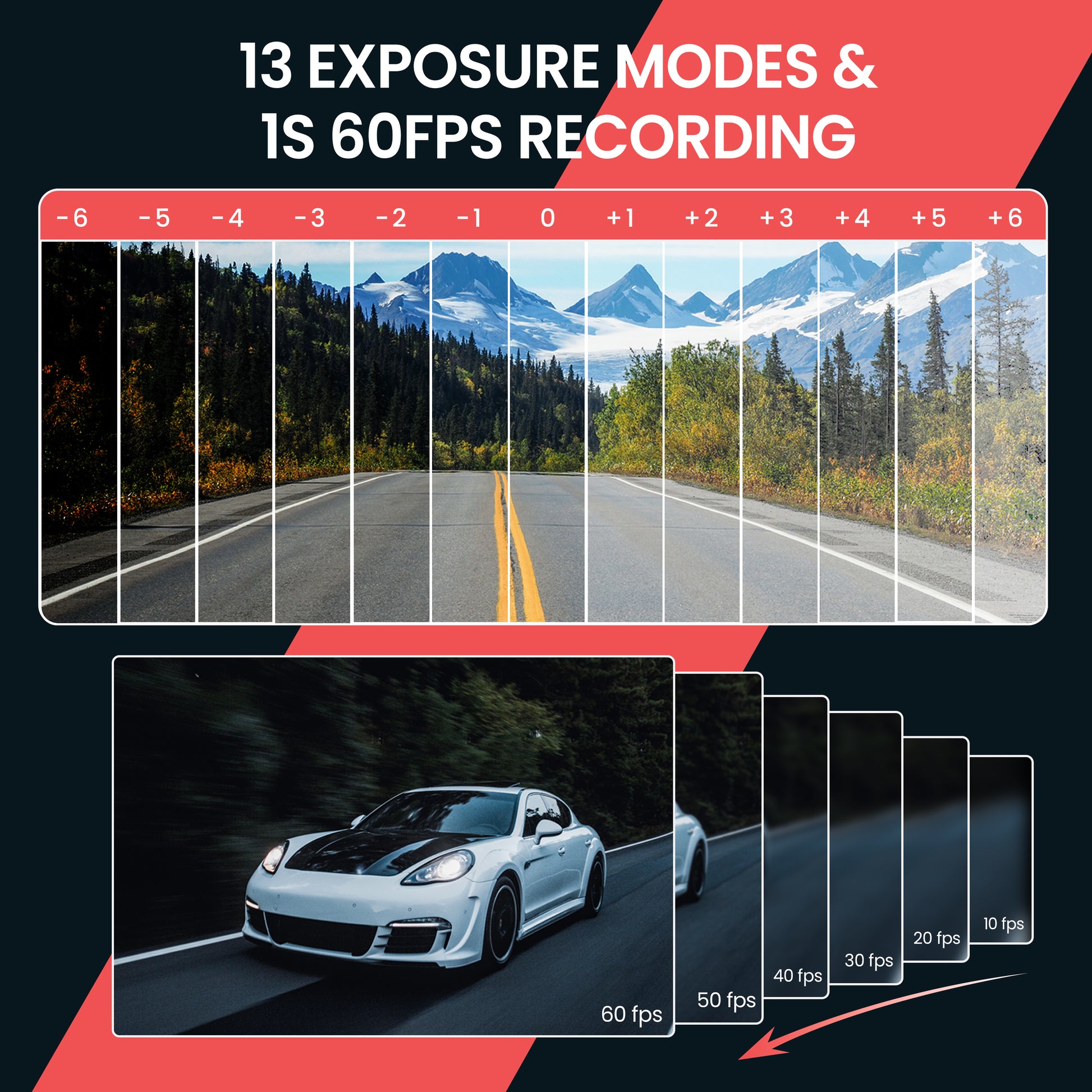 · Super Night Vision: N5Pro dual dash cam delivers super night vision. Driving recorder is equipped with WDR and Sony IMX335 sensor. WDR dash cam could clearly capture all the road details in dim light.